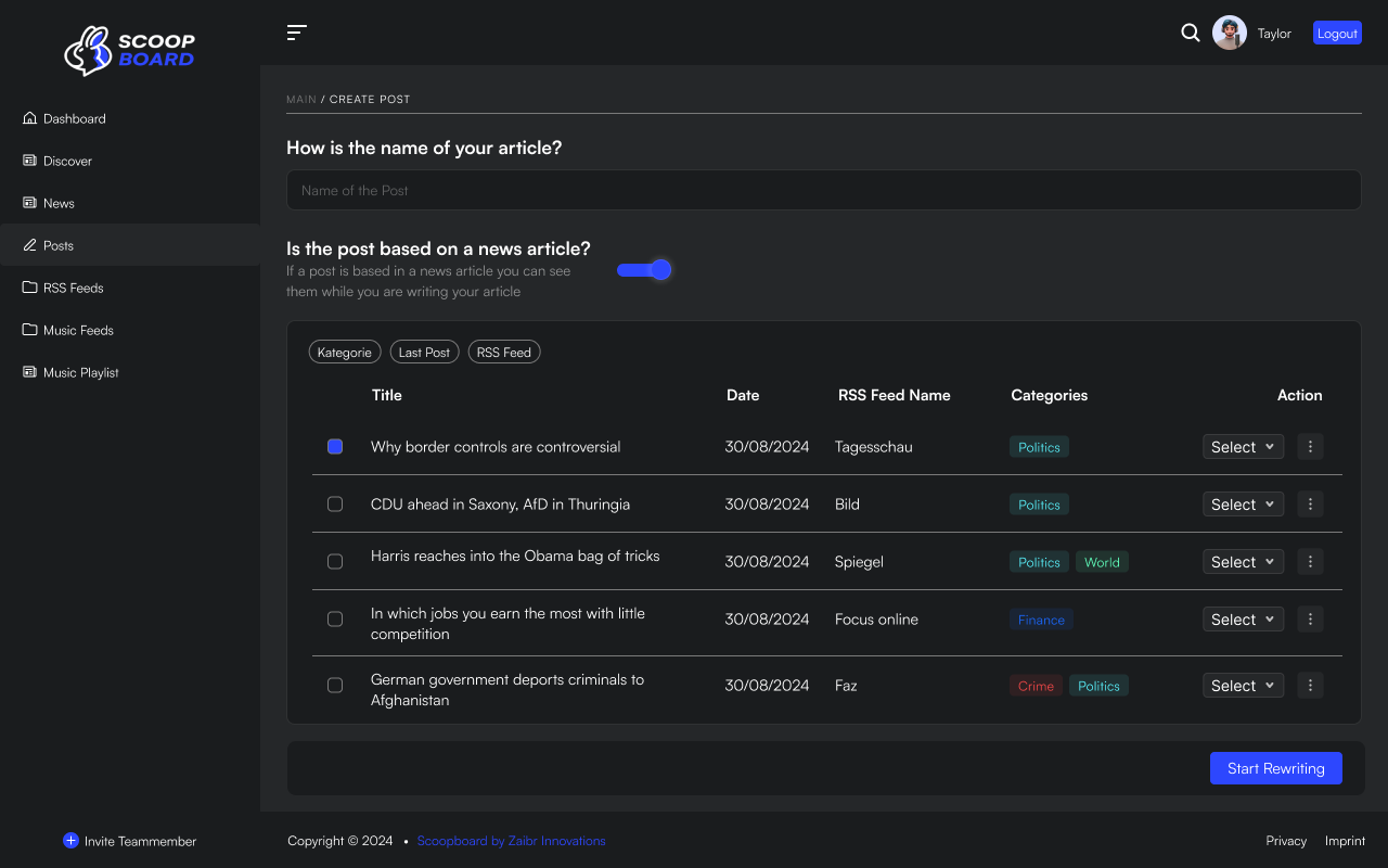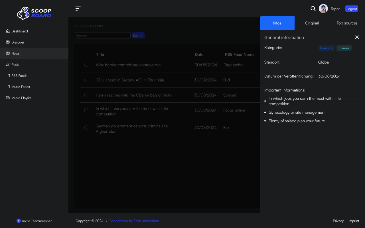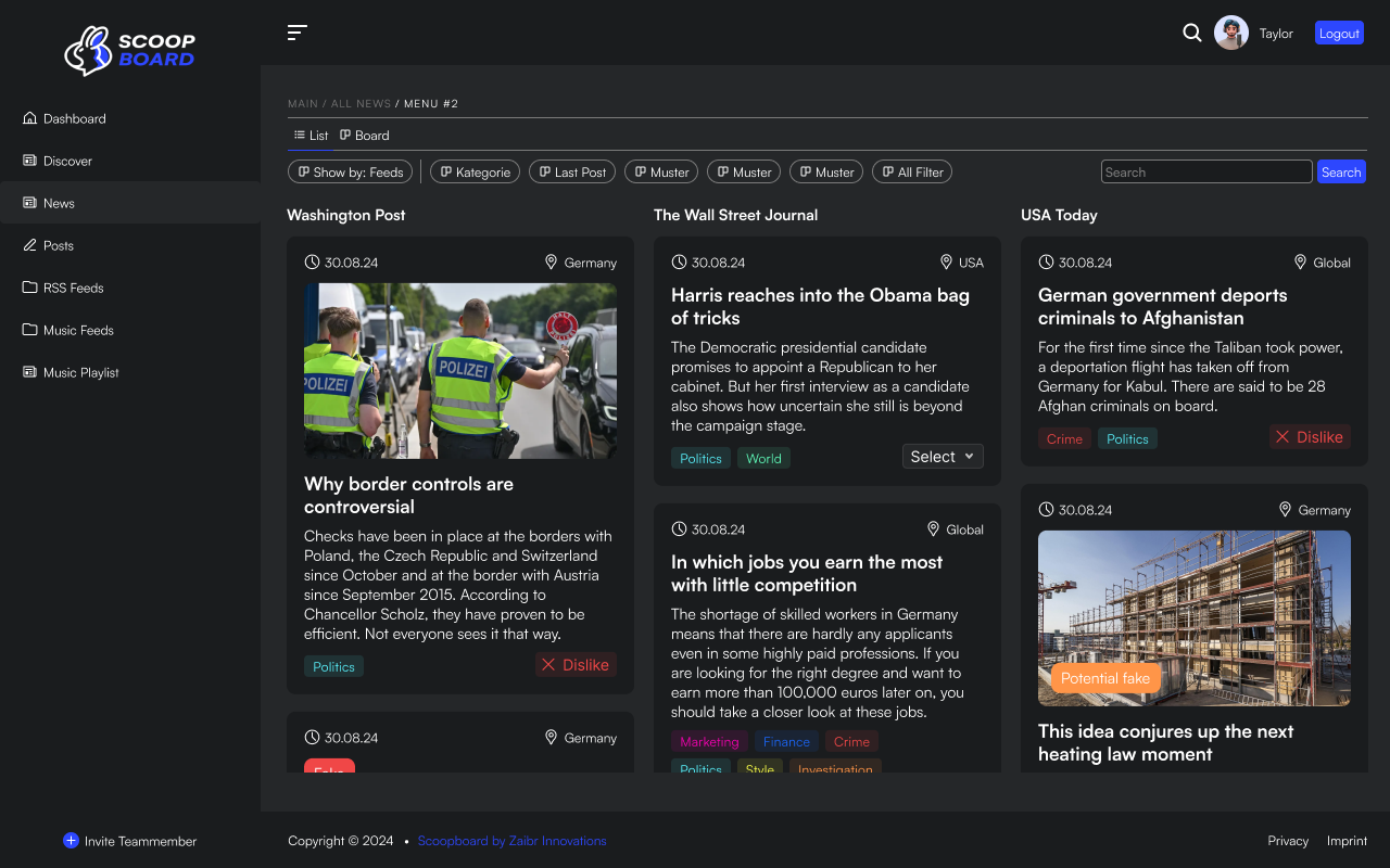 Scoopboard ist dein KI-News Aggregator, der für dich recherchiert, analysiert und die besten Infos liefert – alles für deine perfekte Newserstellung.